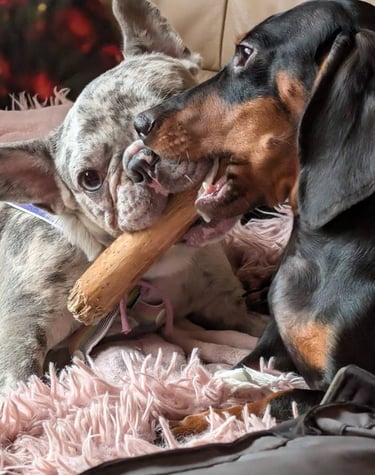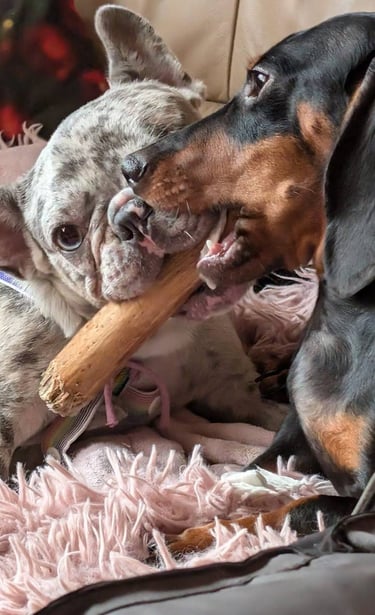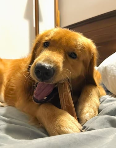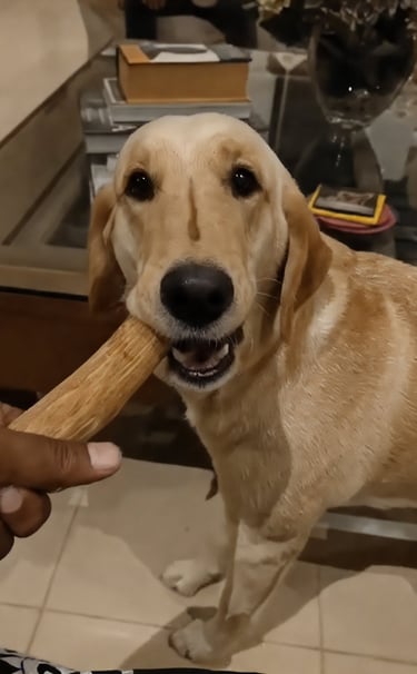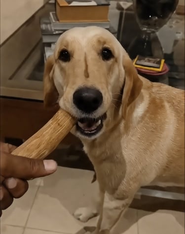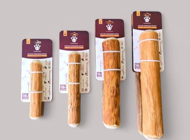 Explore how much the furry friends enjoy our unique, sustainable cinnamon wood dog chew sticks